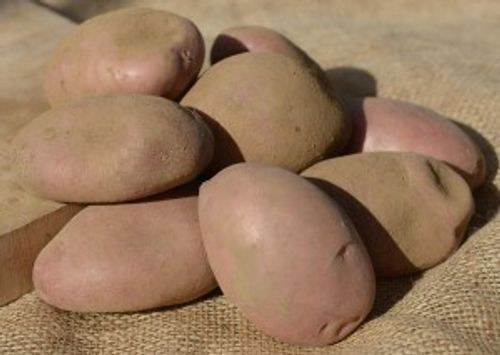 Сорт Блю Белле называют также Голубым Колокольчиком или Улыбкой. Последнее, ласковое название, картофель получил из-за необычной окраски клубней. Основной тон кожуры – желтоватый, а на нем широкими мазками-улыбками фиолетово-розового цвета выделены области глазков. Клубни большие, вырастают до 180 г, с 1 растения реально снять до 16-20 картофелин, а с гектара – 30-45 т. Мякоть нежного кремового оттенка содержит 9-14% крахмала. Покупайте сорт Блю Белле – он отлично подойдет для приготовления жареных и запеченных шедевров, а также супов.